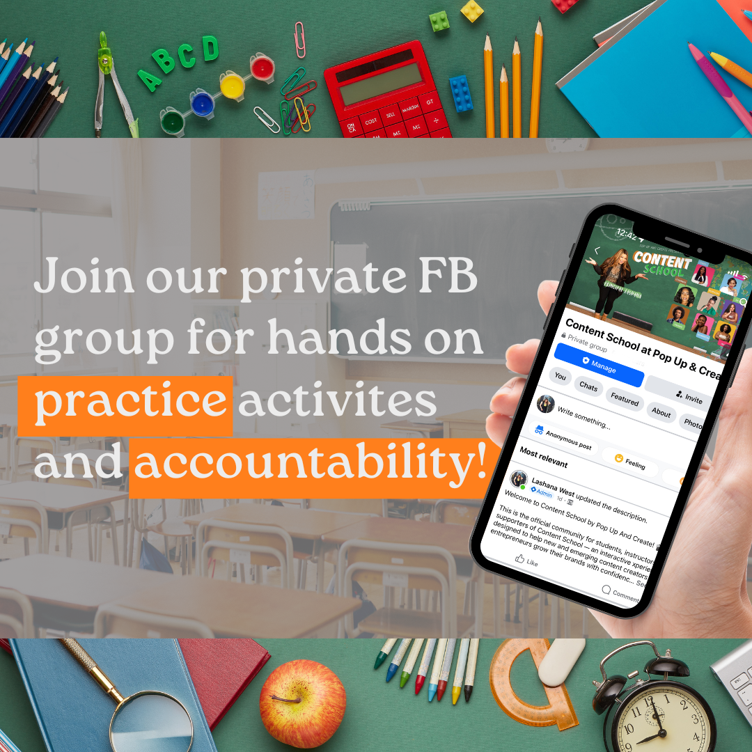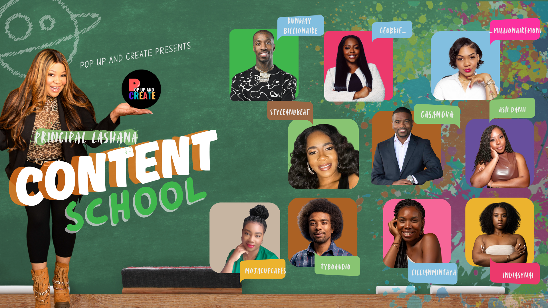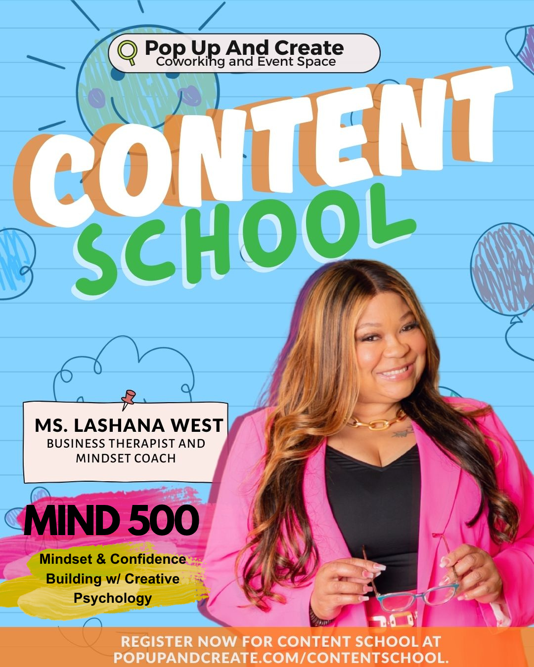 Founder of Content School and the visionary behind Pop Up And Create, LaShana West is a Business Therapist, Mindset Coach, and Creative Strategist who’s helped hundreds of entrepreneurs break past fear and show up boldly online. Known for blending emotional intelligence with execution, she brings a unique mix of confidence-building, storytelling, and strategy to every classroom. As “Principal LaShana,” she’s on a mission to help new and emerging content creators stop shrinking and start creating with clarity, courage, and consistency.