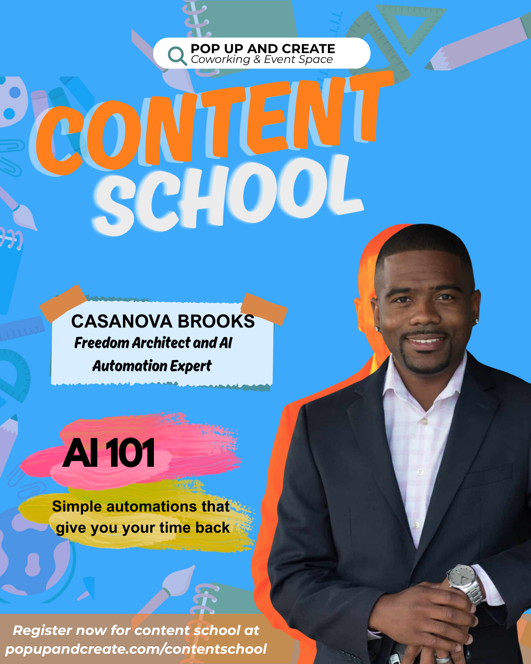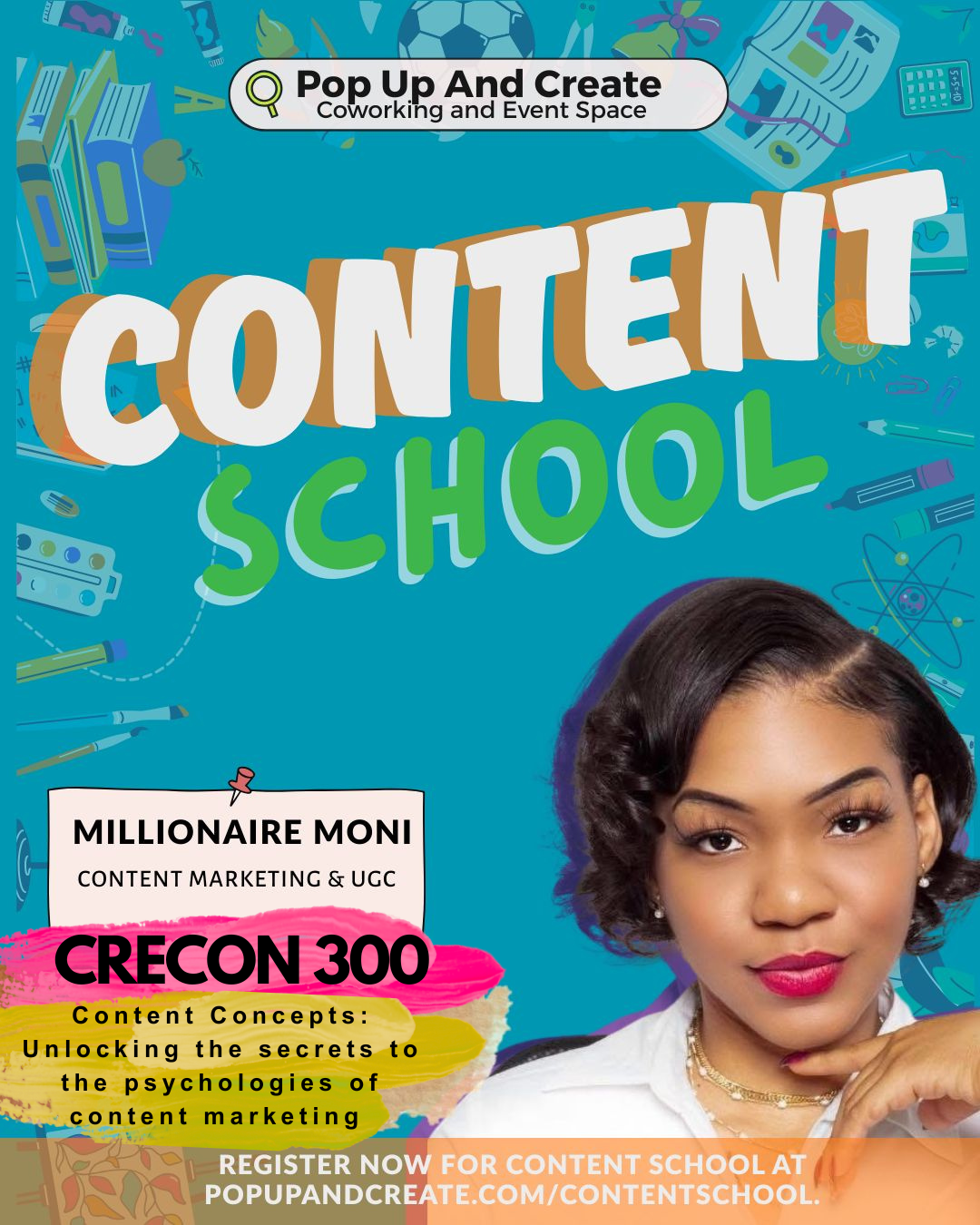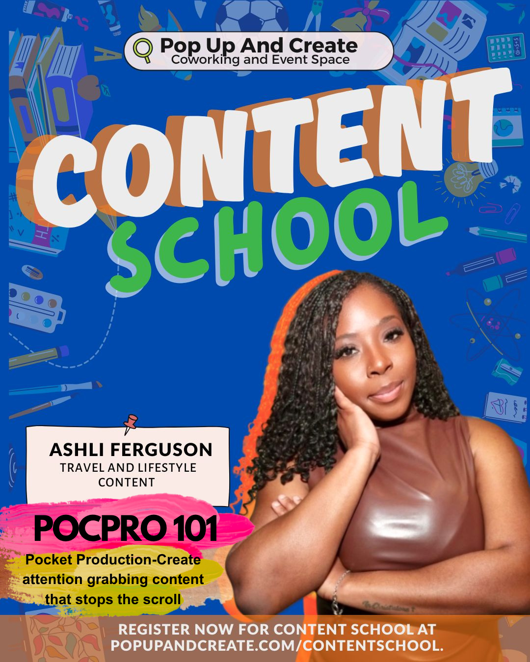 Founder of Content School and the visionary behind Pop Up And Create, LaShana West is a Business Therapist, Mindset Coach, and Creative Strategist who’s helped hundreds of entrepreneurs break past fear and show up boldly online. Known for blending emotional intelligence with execution, she brings a unique mix of confidence-building, storytelling, and strategy to every classroom. As “Principal LaShana,” she’s on a mission to help new and emerging content creators stop shrinking and start creating with clarity, courage, and consistency.